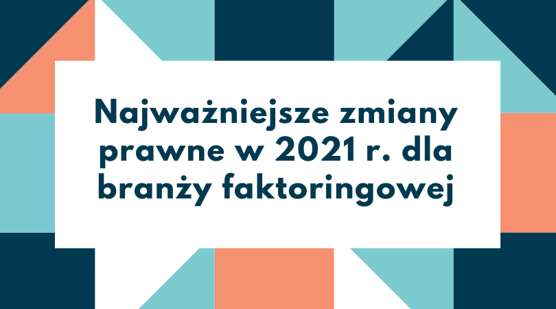 Jak co roku, poniżej prezentujemy subiektywne zestawienie najważniejszych zmian prawnych dla branży faktoringowej w 2021 roku – zarówno już uchwalonych, obowiązujących jak i planowanych. O części z nich pisaliśmy już szerzej na blogu, a o części z nich dopiero napiszemy, zwłaszcza gdy będą znane ostateczne projekty i treści przyjętych regulacji prawnych.